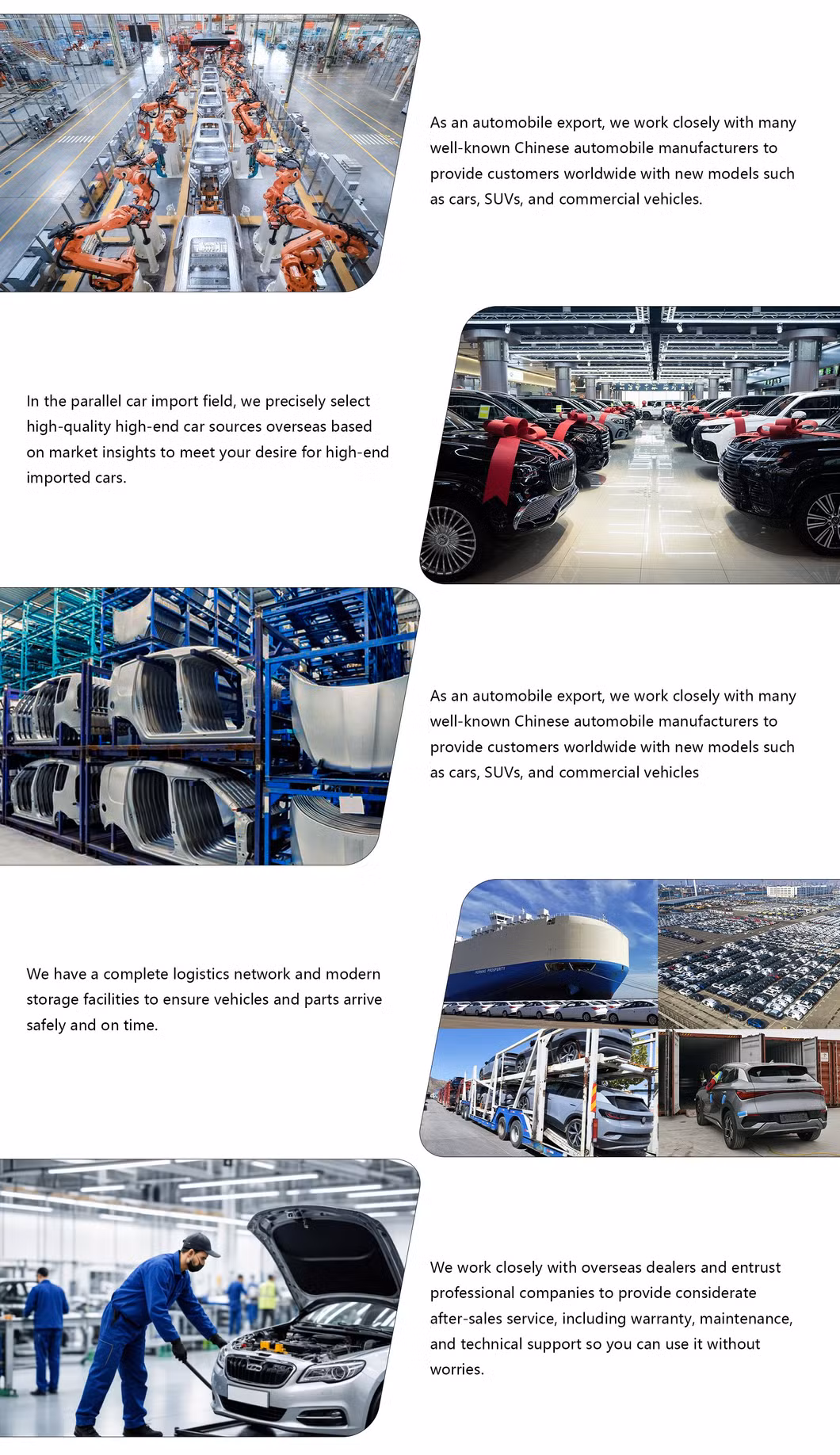 R:la nostra azienda è impegnata nel settore automobilistico importato da 18 anni. Nel settore, godiamo di un'eccellente reputazione. Ci atteniamo al principio secondo cui, finché promettiamo ai nostri clienti, dobbiamo rispettarlo. La fiducia è la più preziosa.